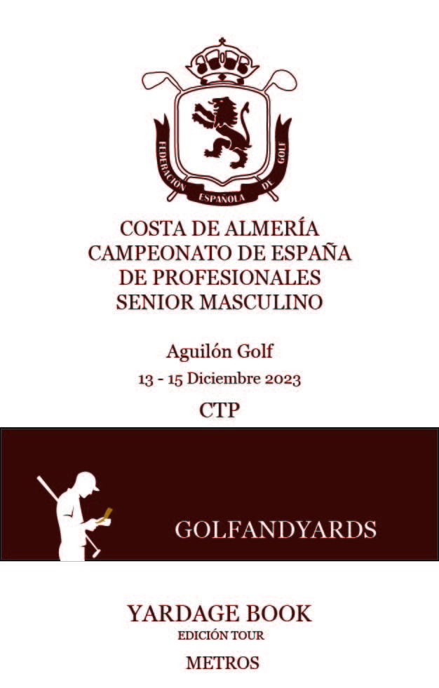 Libro de medidas del club de golf Aguilón, confeccionado para el Costa de Almería Campeonato de España de Profesionales Senior Masculino.